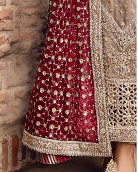 3 Piece Embroidered Couture | Widad - Mahroon Dupatta