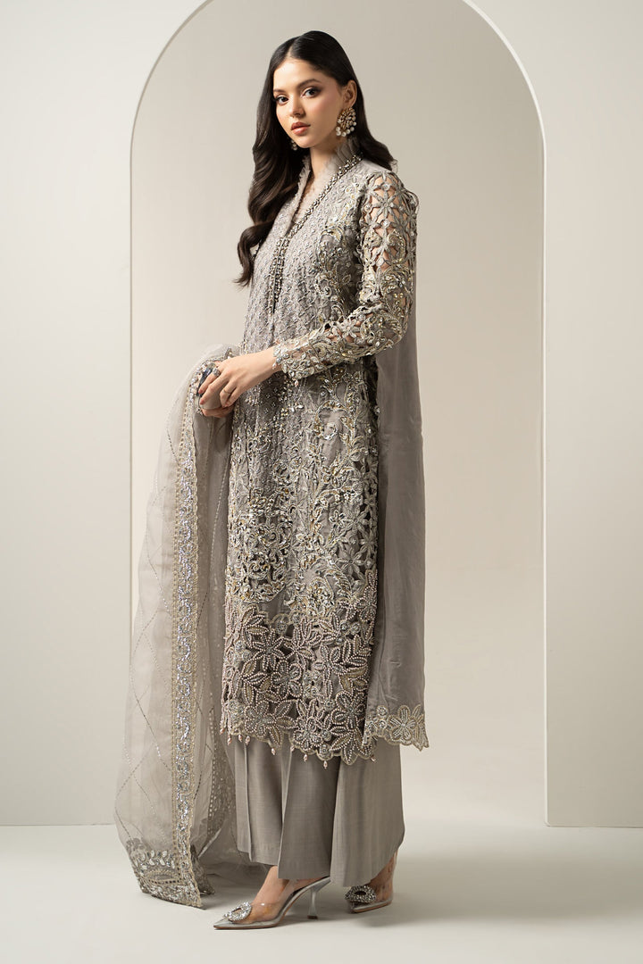 Embroidered Overlap Neckline With Luxury Hand Embellishment & Frey Organza Detailing