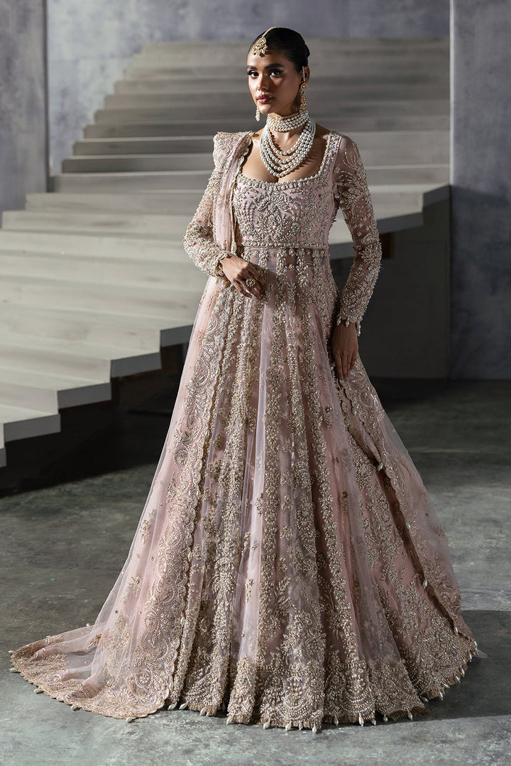 - Embroidered net dupatta with embroidered pallu border (ready-stitched).
