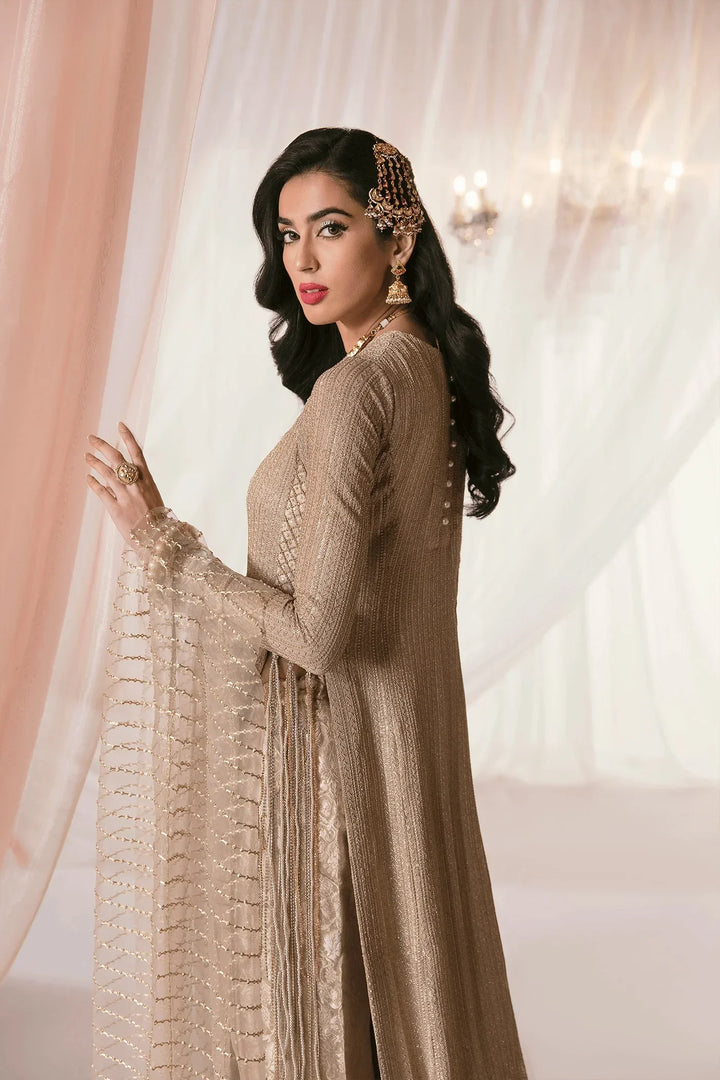 A wonderful expression of class, ‘Ecstasy’ is definitely a showstopper for this festive season. A sequined long shirt is enriched with Gorgeous detailing & pearl chain hangings to depict the NS signature style. Paired with chic Khimkhaab pants and a flamboyant organza dupatta perfect for a surreal look!