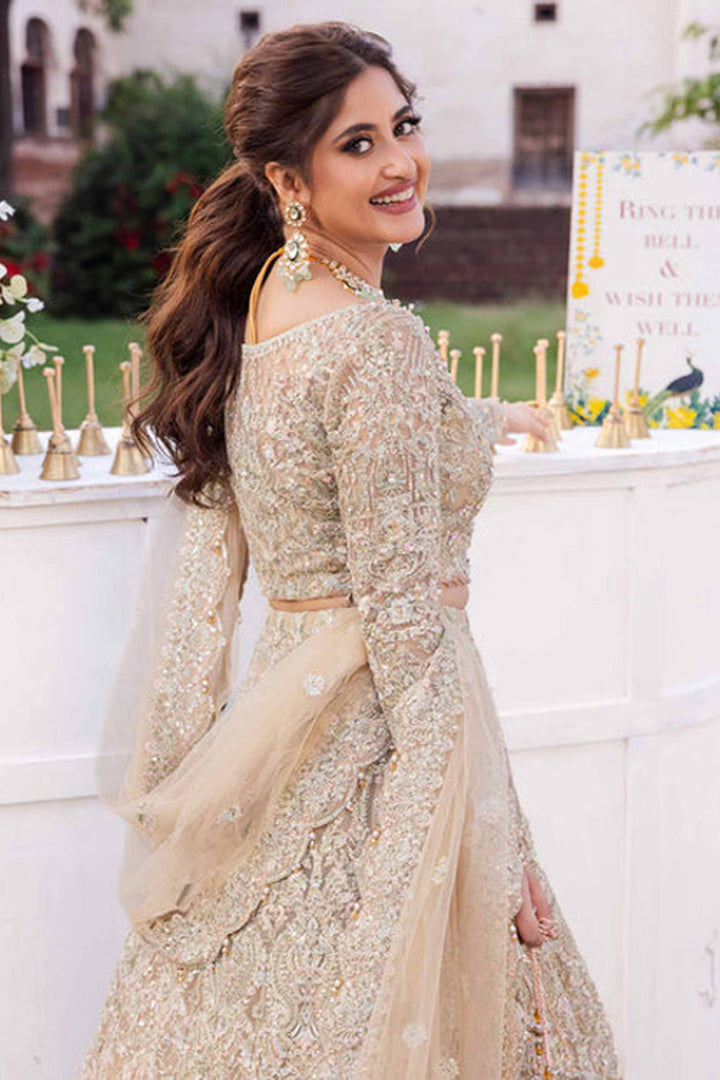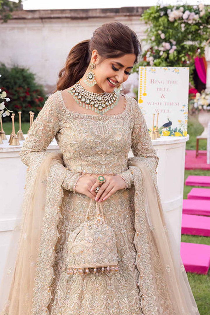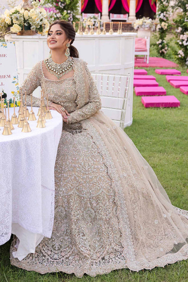 - 3- Embroidered Hand Embellished Sleeves Net- 0.65 M