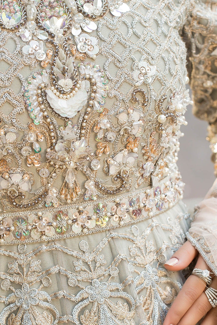 Dreamy handmade bridal ensemble, featuring a classic yet modern silhouette to create a mesmerizing manifestation.