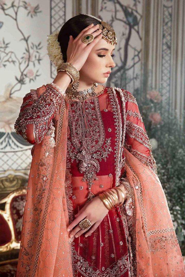 - Curate perfect festive look with our maroon organza raw silk four-piece embroidered hand embellished with diamante details and paired with mukaish work organza dupatta