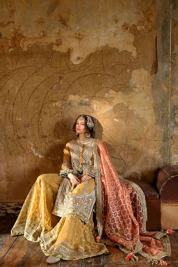 - Harmonizing A Flared Peplum With A Luxuriously Crushed Sharara, The Ensemble Intertwines Traditional Regality With A Dash Of Contemporary Splendor.