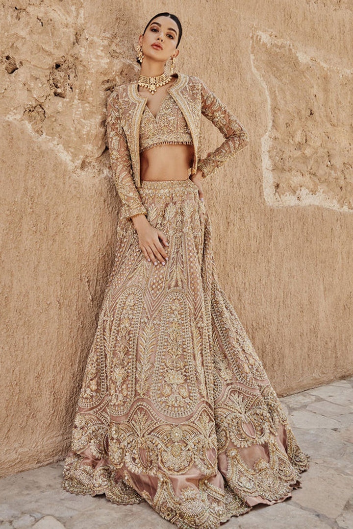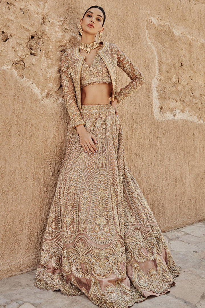 - This Exceptionally Embellished Choli Is Paired With A Jacket Outfit Which Is Organized With A Fawn Organza Base Choli Which Is Sprayed With Sequins Glorifying Its Grace.